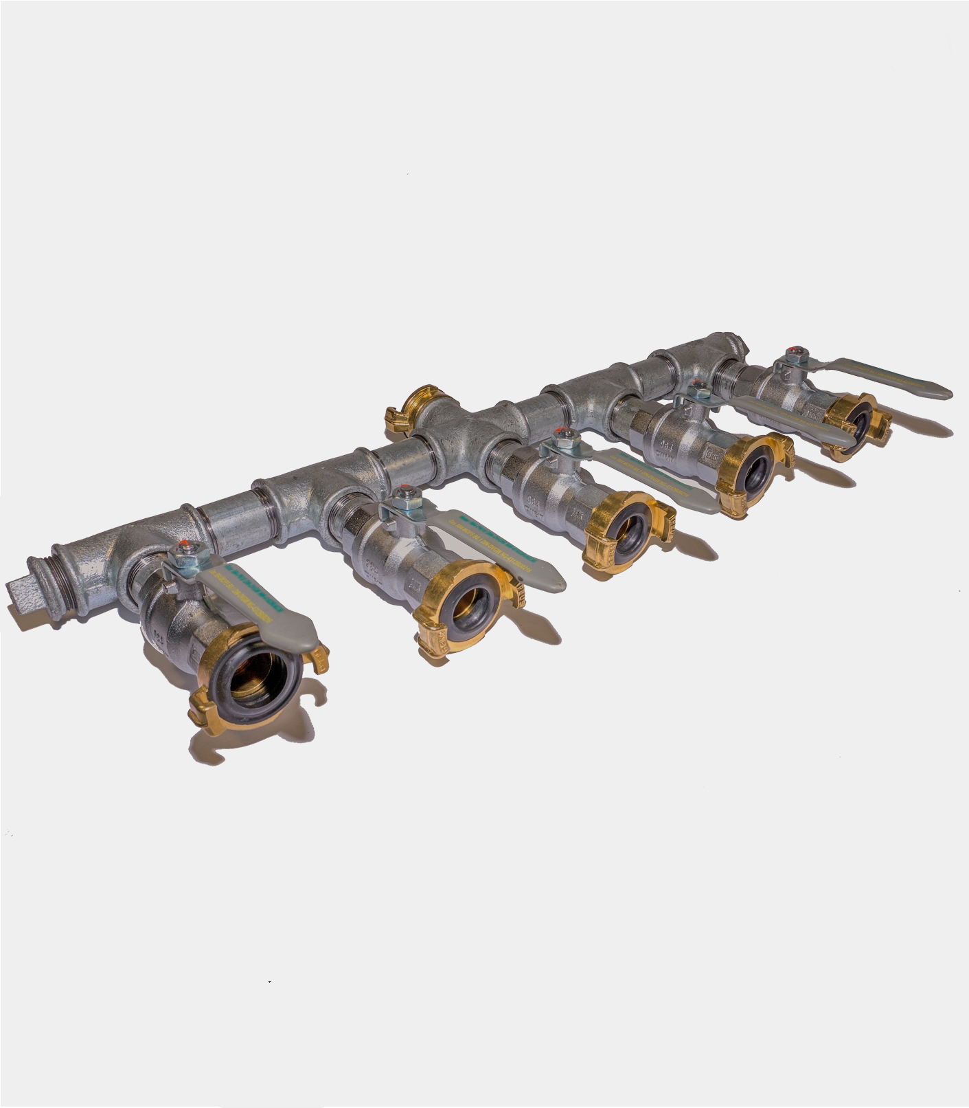 Dank der integrierten Geka Kupplung 3/4” lassen sich alle Anschlüsse schnell und unkompliziert verbinden oder lösen. Der Wasserverteiler besteht aus Messing und verzinktem Stahl, wodurch er deutlich langlebiger und widerstandsfähiger ist als Kunststoff-Alternativen.
